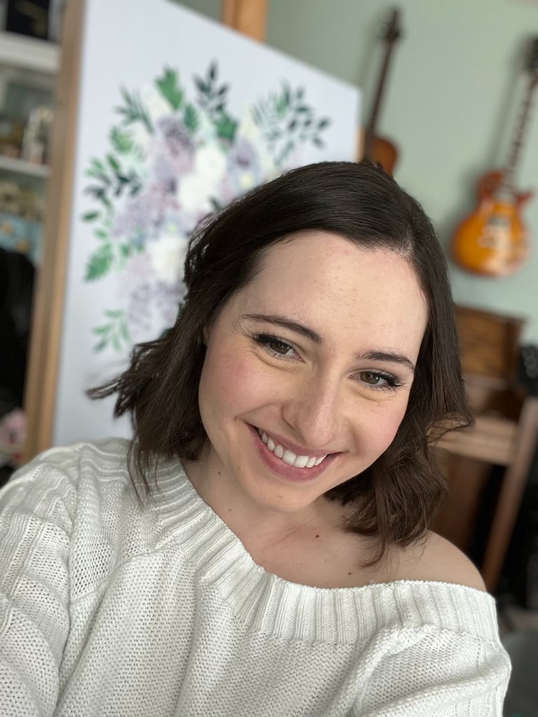 "Katie is so, so talented, and her work is stunning! Her website and Instagram are incredible, but the painting is even better in person. She added what I wanted into the bouquet and kept me updated throughout the process. The painting has to dry for months before it is okay to be shipped, but she packaged it so well and safely that there was no concern about damage in transit. I will definitely want more pieces from her! Absolutely beautiful work-- I am beyond happy with the result."